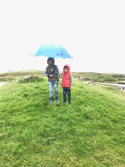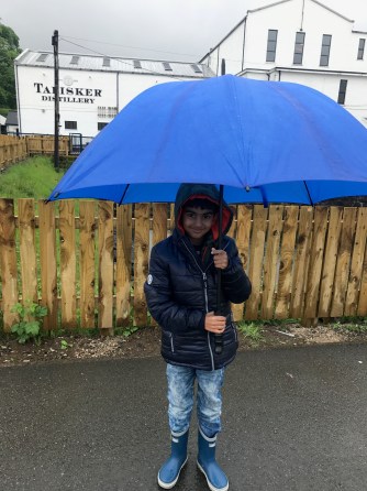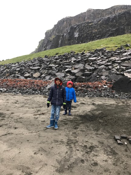 We then made our way to the beach at Staffin to see Dino footprints. There are prehistoric Dino footprints there that are visible when the tide is low. Recently, the island was in the news as another 50 dinosaur tracks were discovered near Brother’s Point. It had started to rain heavy but we were determined, we got to the beach in our gear and commenced out hunt for the prints.