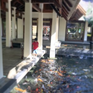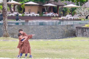 We were cruising through the serene south side of Mauritius, when, a slew of race cars throttled past us. The roar of their revved engines was almost deafening; as the drivers maneuvered their machines through the south corners of the island. We approached a stretch of road that passed through the Black River Gorges National Park and the landscape changed completely, we were in the midst of a thick rain forest with streams, waterfalls, the prettiest flora and fauna. On a different day, we would have loved to visit the park, known for its waterfalls, viewpoints and hikes. We could now see the turquoise coastal waters ahead of us and we knew that we were close. We drove past immaculately manicured lawns and beautiful putting greens nestled in lush green surroundings, we had now reached Shanti Maurice. With 15 acres of lush green gardens, the approach to the resort is extremely impressive, an epitome of a natural hideaway. Notations in Sanskrit of wellbeing fostered the calm and tranquil atmosphere, the kids, however, were busy trying to figure out what to feed the fishes at the Koi pond at the entrance.