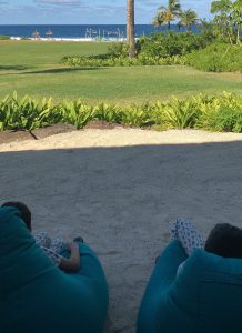 In the evening, we had a private screening of a movie by the beach. The set up was out of this world; beautiful seating arrangements by the sea, light decorations, comfortable couches, a hammock under a starlit sky. It was an absolutely unforgettable experience. We were served with a culinary extravaganza – an exceptional five-course meal and an exquisite Crème brûlée, as the finale. Kids loved the popcorn served with movie and the ice cream that followed.