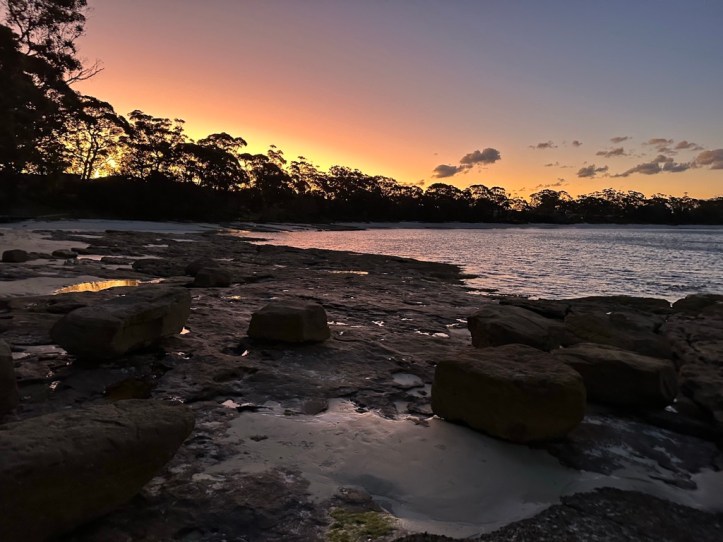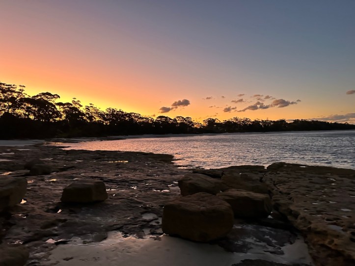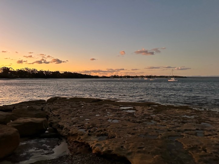 In the evening, we got ourselves some fishing gear and headed to the nearby Woolamia boat ramp and tried our luck with the rod and the reel for a bit before ; It was fascinating to see an eagle ray, swimming in the shallows here; attempting to do the same thing as us sans the apparatus.
